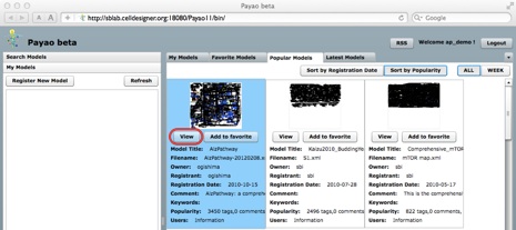 1.Access to the Payao system at http://sblab.celldesigner.org:18080/Payao11/bin/.